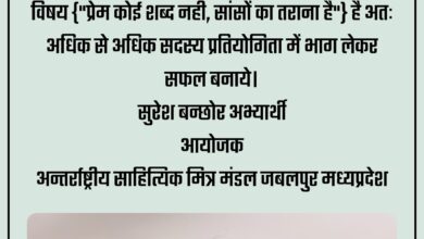 अन्तर्राष्ट्रीय साहित्यिक मित्र मंडल, जबलपुर, मध्यप्रदेश। *काव्य गोष्ठी हेतु* दिनांक: 26 मार्च 2026 विषय: नवरात्रि और संस्कृति *नवरात्रि और…