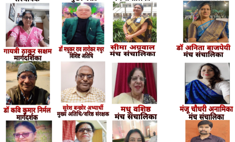 मंच संचालन मुख्य संचालिका आभा गुप्ता,हिना कौसर गोरखपुरी जी,सीमा अग्रवाल धारुहेड़ा जी, डॉ अनिता बाजपेयी जी, मधु वशिष्ठ जी,मंजू चौधरी अनामिका जी डॉ कीर्ति यादव जी करेगी ! सरस्वती वंंदना डॉ मोनिका रघुवंशी जी करेगी ।