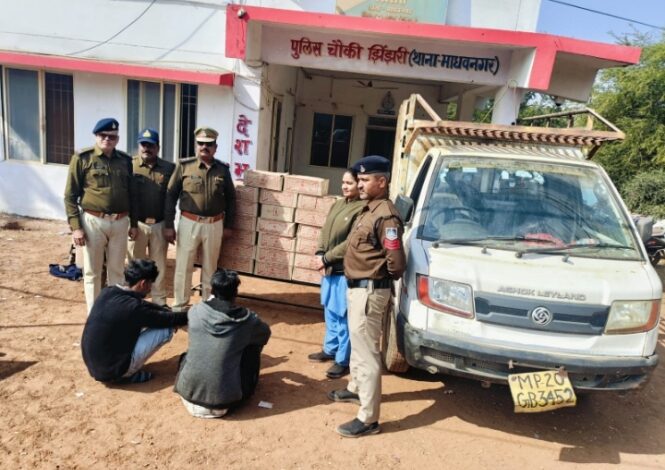 कटनी –जिले में नशा मुक्त अभियान के तहत पुलिस को एक बड़ी सफलता हाथ लगी है। पुलिस चौकी झिंझरी ने अवैध रूप से शराब का परिवहन कर रहे दो आरोपियों को धर दबोचा है और भारी मात्रा में शराब व वाहन जब्त किया है।पुलिस अधीक्षक श्री अभिनय विश्वकर्मा के निर्देशन में, अतिरिक्त पुलिस अधीक्षक डॉ. संतोष डेहरिया, नगर पुलिस अधीक्षक नेहा पच्चीसीया एवं थाना प्रभारी माधवनगर संजय दुबे के मार्गदर्शन में यह कार्रवाई की गई। पुलिस चौकी झिंझरी द्वारा अवैध शराब की तस्करी करने वालों के विरुद्ध विशेष अभियान चलाया जा रहा है। 12 जनवरी 2026 की है, जब रात्रि गश्त के दौरान मुखबिर से सूचना मिली कि एक अशोक लीलैंड कंपनी का लोडर वाहन तेवरी की ओर से कटनी की तरफ अवैध शराब लेकर आ रहा है। सूचना के आधार पर एनएच-30 रोड, ग्राम देवरीटोला स्थित मैगी प्वाइंट ढाबा के सामने पुलिस ने घेराबंदी कर वाहन को रोका। पुलिस को देखकर वाहन चालक और उसका साथी भागने लगे, जिन्हें हमराह स्टाफ व राहगीर गवाहों की मदद से पकड़ लिया गया।पकड़े गए आरोपियों ने अपना नाममाधव केवट, उम्र 19 वर्ष, निवासी विवेकानंद चौक लखेरा, थाना रंगनाथ नगर, जिला कटनीगोपी भूमिया, उम्र 22 वर्ष, निवासी टिकरिया स्कूल के पास, थाना रंगनाथ नगर, जिला कटनीबताया।वाहन की तलाशी लेने पर 32 पेटी लाल मसाला देशी मदिरा, कुल 1600 पाव यानी 288 बल्क लीटर शराब बरामद हुई, जिसकी अनुमानित कीमत लगभग 1 लाख 76 हजार रुपये है। साथ ही एक अशोक लीलैंड दोस्त प्लस लोडर वाहन क्रमांक MP-20-GB-3452, जिसकी कीमत करीब 7 लाख 50 हजार रुपये बताई गई है, को भी जब्त किया गया। कुल जब्ती की कीमत लगभग 9 लाख 26 हजार रुपये आंकी गई है।पुलिस ने आरोपियों के विरुद्ध धारा 34(2) आबकारी एक्ट के तहत कार्रवाई करते हुए उन्हें अभिरक्षा में लिया है। प्रारंभिक जांच में यह सामने आया है कि आरोपी संगठित रूप से अवैध शराब तस्करी में लिप्त थे। पुलिस चौकी झिंझरी द्वारा पिछले दो महीनों में अवैध शराब की छह बड़ी खेप पकड़ी जा चुकी हैं। विवेचना के दौरान अन्य आरोपियों के नाम सामने आने की भी संभावना है।सराहनीय भूमिका:इस पूरी कार्रवाई में चौकी प्रभारी उप निरीक्षक राजेश दुबे के नेतृत्व में सहायक उप निरीक्षक शशिभूषण सिंह, प्रधान आरक्षक राजेश चौधरी एवं प्रधान आरक्षक पंकज त्रिपाठी की महत्वपूर्ण भूमिका रही।