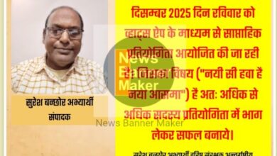 दिनांक १५ फरवरी २०२६ रविवार को व्हाट्सएप में साप्ताहिक प्रतियोगिता आयोजित हो रही है।