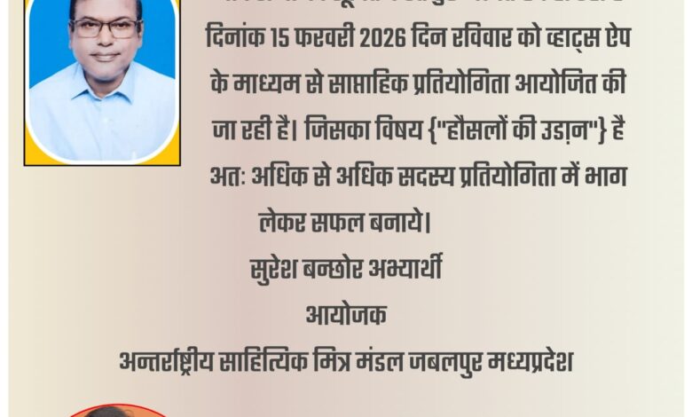 साहित्यिक मित्र मंडल जबलपुर में प्रतियोगिता का आयोजन होना निर्धारित किया गया है।